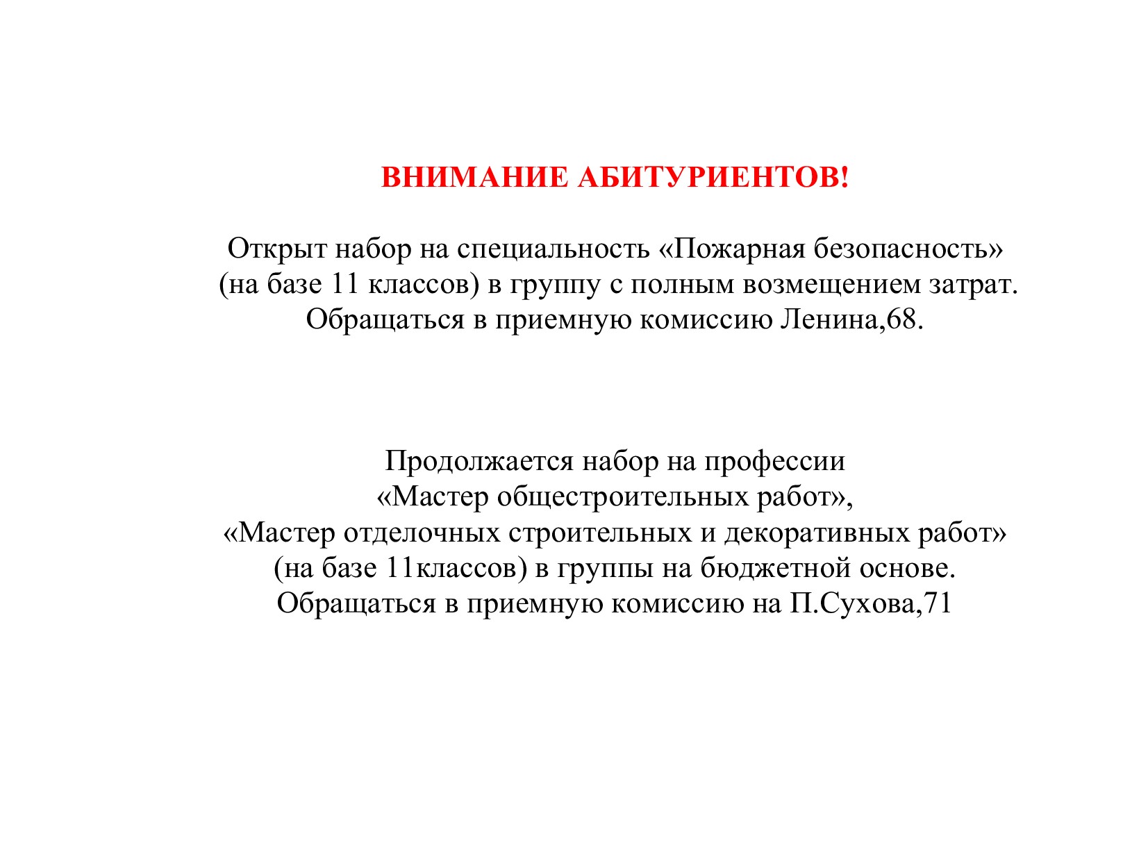 | Внимание студентов 1 курса, обучающихся по программам подготовки специалистов среднего звена! |
