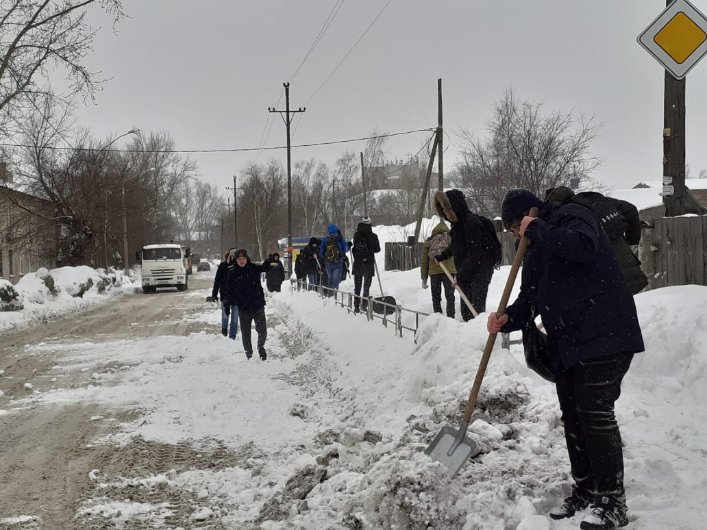 В связи с неблагоприятными условиями и небывало снежной зимой в городе Барнауле  остро встал вопрос об организации дополнительной  очистки от снега, в первую очередь, тротуаров, общественных и социально значимых территорий. Студенты нашего колледжа не остались в стороне.