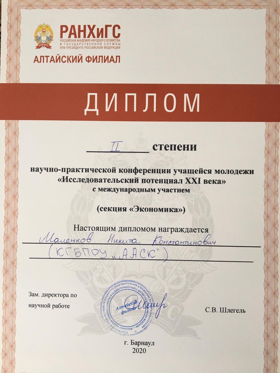 Маленков Никита 2 место;
