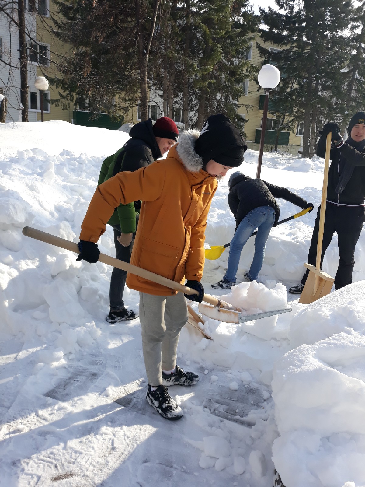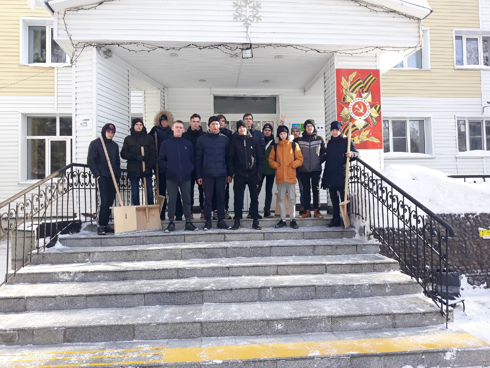 Волонтеры отряда принимают активное участие в городской акции «Снежный штурм». Узнав о необходимости уборки снега на территории Барнаульского дома-интерната, волонтёры  решили организовать свою акцию «Мы помним Вас, ветераны!». Дому ветеранов Саванта помогает на протяжении многих лет. Регулярно каждую осень и весну организовывает поездки для посильной помощи.