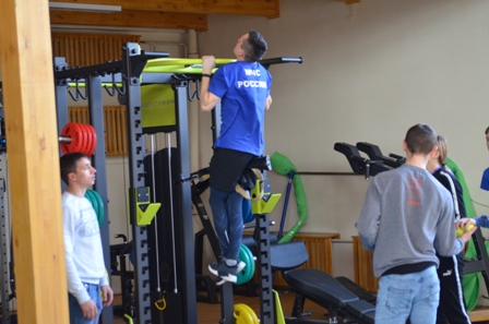 Вторая часть  соревнований – это физическая подготовка ребят: жим гири, потягивание, жим от пола,  пресс, преодоление полосы препятствий.