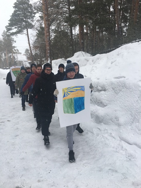 Олимпиада началась с шествия команд. Во главе  колоны ребята несли гербы своего района.