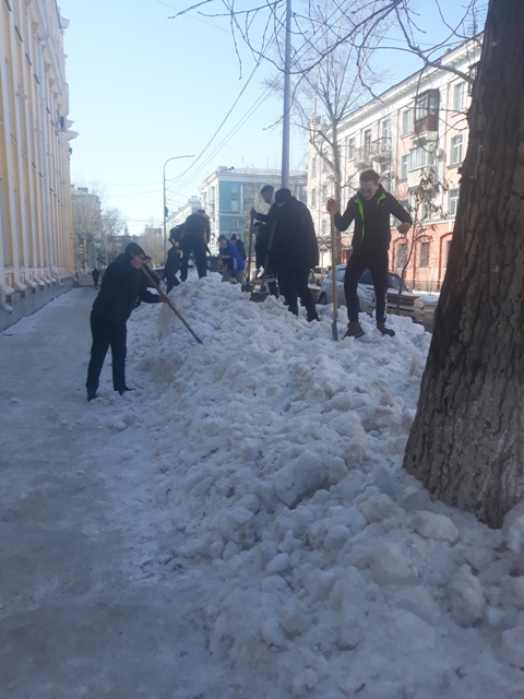 с 1 по 30 апреля на территории Барнаула пройдет традиционный месячник весенней очистки и благоустройства. В рамках месячника 1 апреля студенты колледжа вышли на ворошение снега на прилегающей к зданиям колледжа территории.
