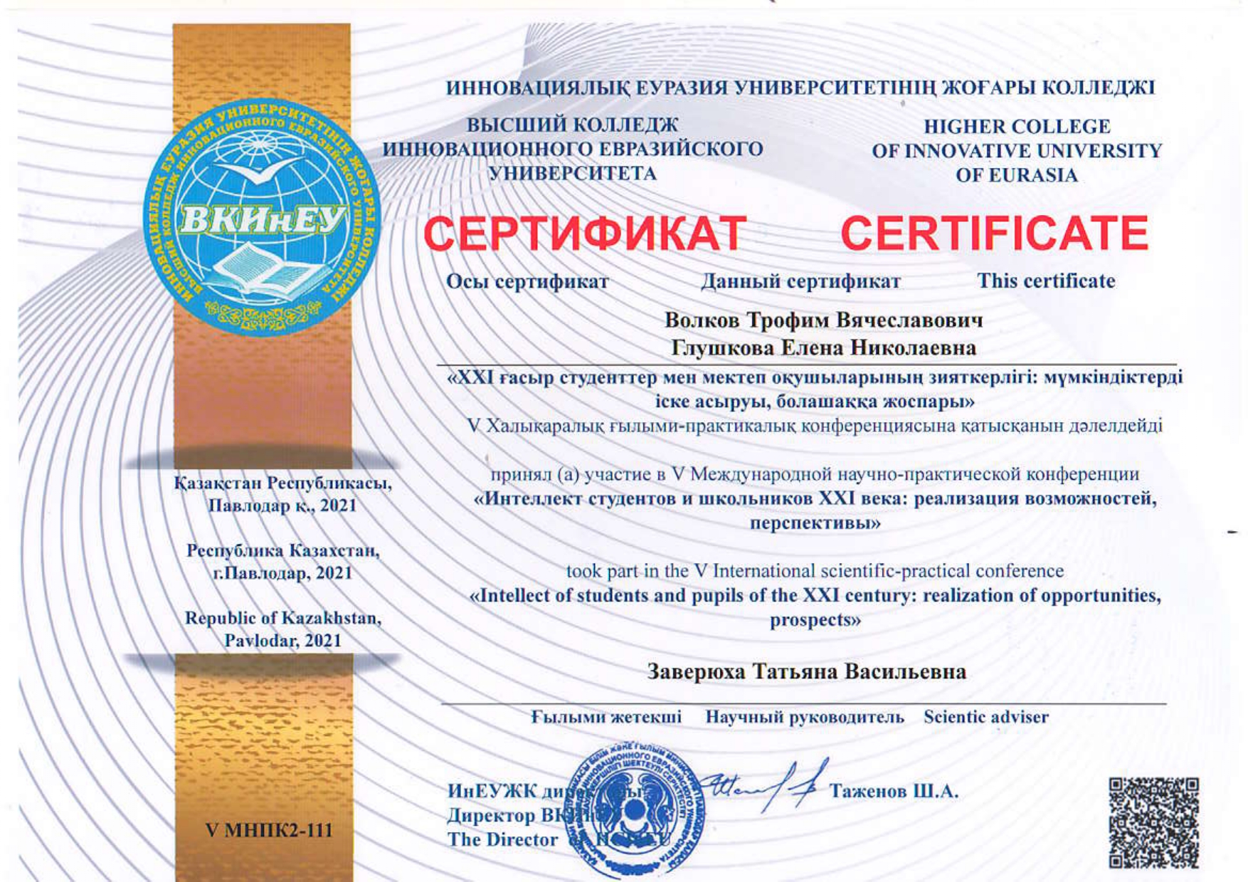 На платформе Высшего колледжа Инновационного Евразийского университета состоялась V Международная студенческая научно-практическая конференция «Интеллект студентов и школьников XXI века: реализация возможностей, перспективы», посвященная 30-летию Независимости Республики Казахстан и 20-летию Высшего колледжа Инновационного Евразийского университета.