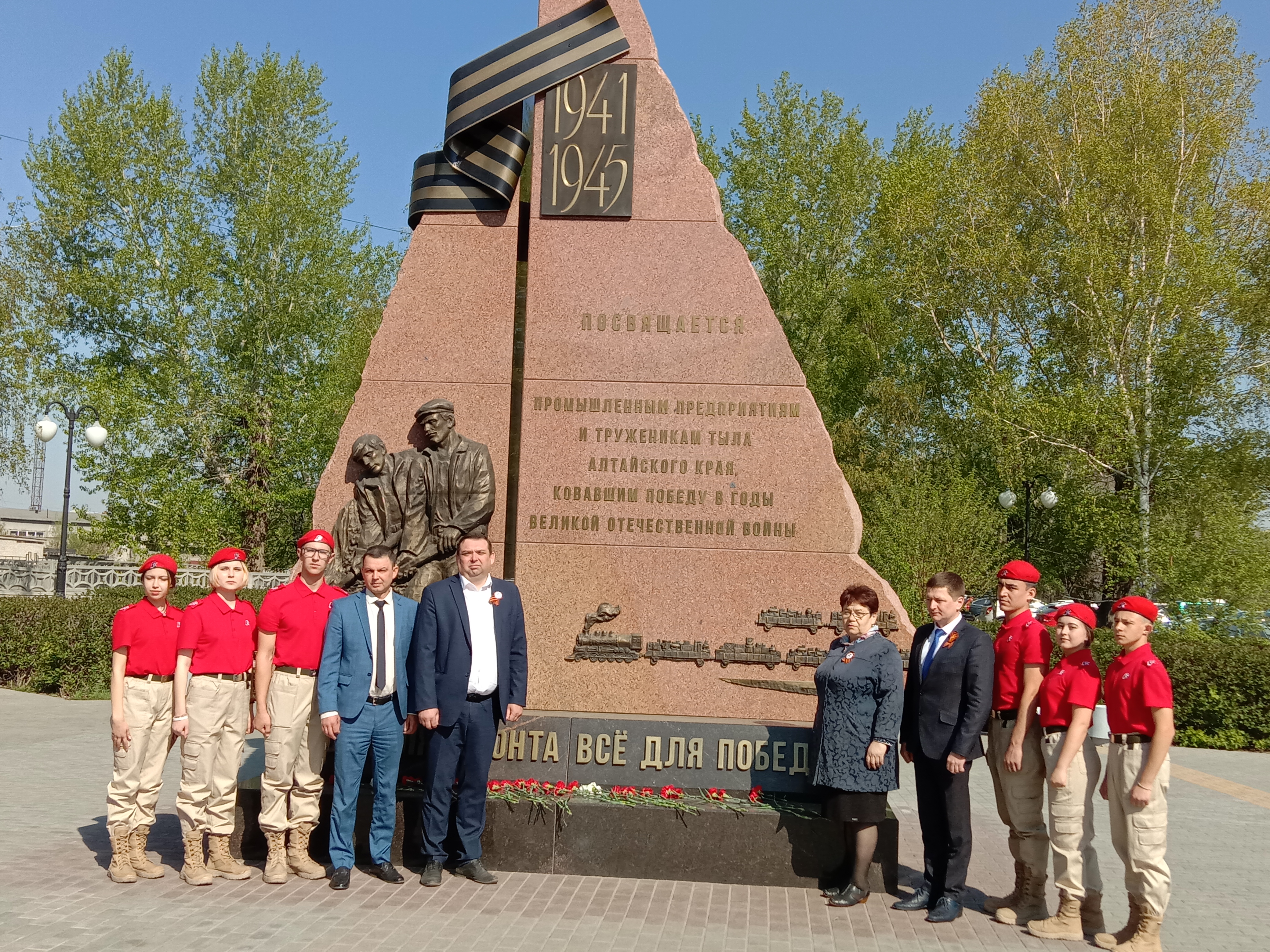 В возложении приняли участие депутаты Барнаульской городской Думы Дмитрий Ильиных и Светлана Бочкова, заместитель главы администрации по социальным вопросам Галина Бровко, директор Алтайского архитектурно-строительного колледжа В.А. Баленко и курсанты юнармейского ВПК «ВОИН».