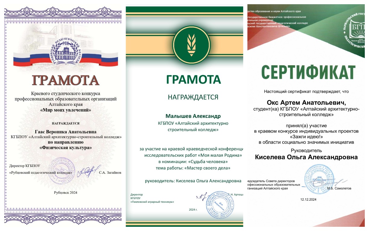 В декабре подведены итоги Краевых студенческих конференций, проходящих в соответствии с планом работы Совета директоров профессиональных образовательных организаций Алтайского края, в которых студенты ППКРС нашего колледжа приняли участие.
