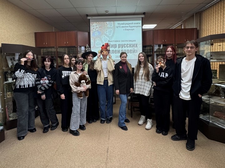 В музее редкой книги Центральной городской библиотеки им. Н.М. Ядринцева студенты 3 курса гр. Д-21 с преподавателями Калугиной В.А и Линдеман А.О посетили выставку-экспозицию «Мир русских календарей».