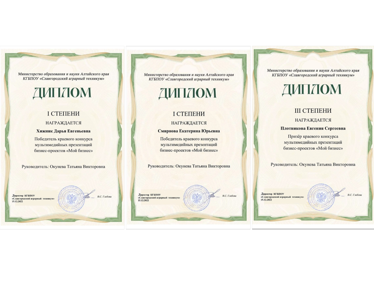 16 декабря были подведены итоги краевого конкурса мультимедийных презентаций бизнес-проектов «Мой бизнес», который заочно состоялся в КГБПОУ «Славгородский аграрный техникум».